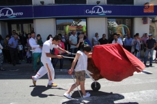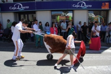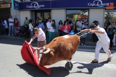 Los carretones de 'Encierros Infantiles' Huertos fueron los encargados de poner la nota infantil a la Feria de Abril vitigudinense, un evento que tenía lugar en la tarde del sábado y que se repetía en la mañana de este domingo como prólogo al acontecimiento taurino previsto para esta tarde organizado por la Asociación de Hostelería de la villa.