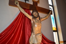 Crucificado indocumentado de principios del s. XX procedente del Colegio de las Trinitarias, elaborado en escayola es posible que provenga de los talleres de imaginería de Olot. Desfila en plano inclinado sobre andas de carga interior.