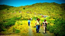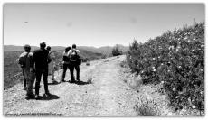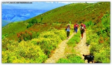 Con el estómago lleno, los más aventureros iniciaron la ruta del Codorro. 49 personas y Balú, el perro, recorrierron Fuentegrande, ascendieron al pico El Codorro (1370mts) donde arribaron al motivo del lema de esta quedada "Caminando entre dos aguas", ya que el Codorro actúa como corte hidrográfico de las dos vertientes: Oeste, Duero; este, Tajo. Desde allí los senderistas pudieron atisbar la Cueva de la Mora, el Castillo Viejo de Valero y el nacimiento del regato La Palla.