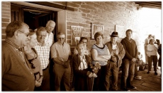 La tía Horten contó la historia de la fábrica a quien acompañó el "tío José" con otra historia, la de Arroyomuerto, antiguo nombre del pueblo cambiado por sus propios habitantes a San Miguel del Robledo. Sole preparó café y té para todos y mostró alguno de sus cuadros bajo los soportales. Vicente, tamborilero del pueblo, amenizó el acto, donde no faltaron los "sacatrapos" de Beni y Rafaela.