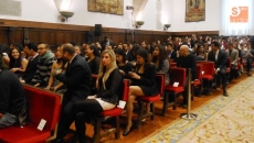 La Universidad de Salamanca y Banco Santander, a través de su División Global Santander Universidades, entregaron esta mañana en el Paraninfo de las Escuelas Mayores los diplomas acreditativos de los distintos programas de movilidad internacional correspondientes al curso 2013-2014.