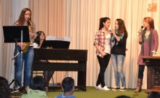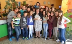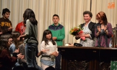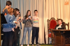 El acto continuó con la intervención de varios grupos de alumnos. Para despedir a Manoli Domínguez, sus alumnos de francés de 2º de la ESO leyeron un texto en francés (que posteriormente tradujeron al español), mientras que los alumnos de 1º de la ESO de los que ha sido tutora este año le dedicaron una composición, además de regalarle un ramo de flores y una tarta (que degustaron al concluir el acto en la cafetería del IES).