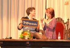 En el caso de Alicia Rodríguez-Pacheco, la mayoría de los alumnos del último curso al que dio clase "han volado del nido", como ella misma expresó, ya que eran de 2º de Bachillerato o 4º de Diversificación. Dos 'supervivientes' que cursaron la modalidad bilingüe de 4º de la ESO a la que también dio clase subieron al estrado para dedicarle unas palabras, manifestando que no la olvidarán.