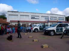 LUMBRALES | Los alumnos asistieron a una demostración canina de un perro policía y pudieron subirse a los coches y motocicletas utilizadas habitualmente por los agentes