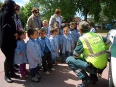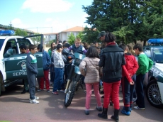 A continuación, los alumnos pudieron experimentar la sensación de subirse a los coches y motos que los agentes utilizan habitualmente, y que trasladaron hasta el colegio para mostrárselos a los niños.
