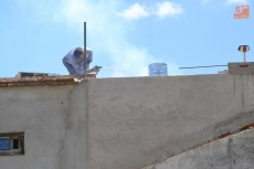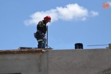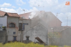 El propio propietario de la vivienda subió al tejado con garrafas de agua, y posteriormente con una manguera, para intentar apagar las llamas y disipar el humo, pero finalmente fue necesaria la intervención de los Bomberos, que desplazaron una dotación.