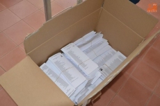 De igual forma, se dejó todo el material (incluidos folios y bolígrafos) que pueden necesitar las mesas electorales en la jornada del domingo. Todo ese material viene ya preparado en cajas, a razón de una caja por cada mesa electoral.