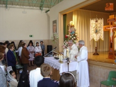 En la tarde de hoy se ha celebrado el día de María Auxiliadora con una misa en el pabellón del colegio que lleva su nombre, a la que han asistido, un numeroso grupo de antiguas alumnas, gente devota de la Virgen y autoridades de la localidad, entre las que se encontraban el alcalde Alejo Riñones y su esposa, además de las concejalas Purificación Pozo e Inmaculada Martín.