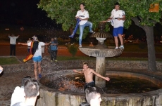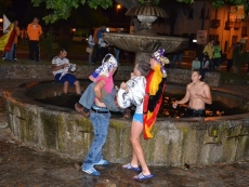 Pese al largo trayecto en el desierto que ha vivido el Real Madrid en la Champions, se pudieron contar con los dedos de una mano los mirobrigenses que acudieron a la fuente a darse un chapuzón (eso sí, los que formaron parte de este grupo estuvieron muy activos), y con los dedos de la otra, los que acudieron hasta allí a disfrutar de la fiesta pero que también acabaron en el agua gracias a sus amigos.