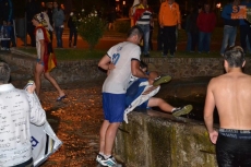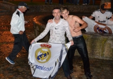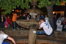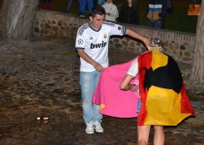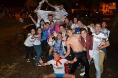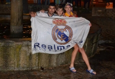 Con el pitido final del colegiado, se inició la fiesta madridista, que tuvo como primera parada la fuente del Árbol Gordo, lugar habitual de celebración de los títulos deportivos en Ciudad Rodrigo.