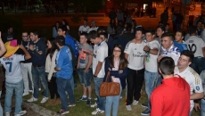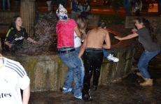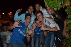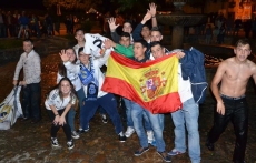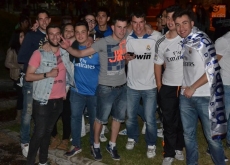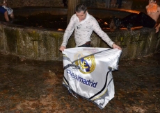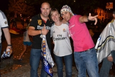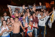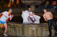El resto de asistentes se conformaron con congregarse en torno a la fuente, lanzando los más jóvenes cánticos tanto de ánimo al Real Madrid como de rechazo a Atlético de Madrid y Barcelona.
