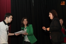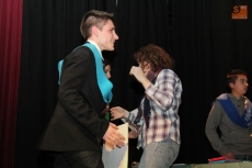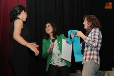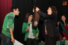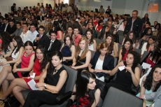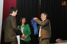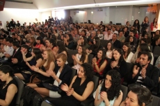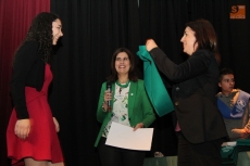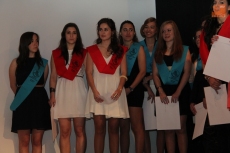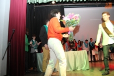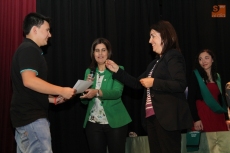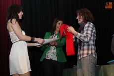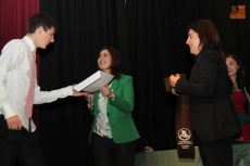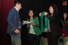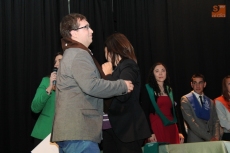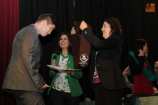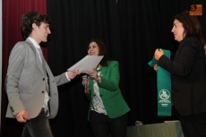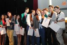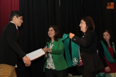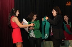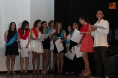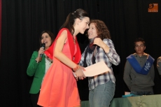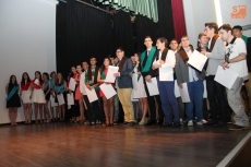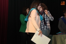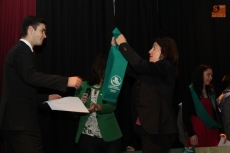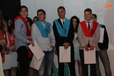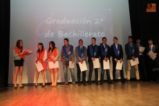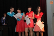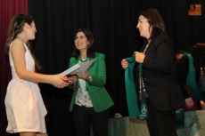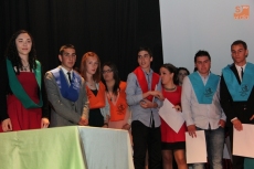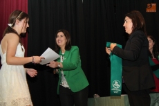 Tras la proyección de un audiovisual con imágenes de su etapa formativa de esta nueva hornada de bachilleres y futuros profesionales, se procedió a la entrega de bandas y becas, a lo que los alumnos correspondieron con varios ramos de flores para sus tutoras.