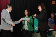 Un total de 65 alumnos de Bachillerato y Ciclos Formativos del IES Ramos del Manzano recibieron este martes sus becas y bandas tras haber concluido con éxito una etapa de sus vidas en este centro educativo.