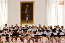 El acto, que ha contado con la actuación del coro de la Asociación de Alumnos de la Universidad de la Experiencia, ha estado presidido por el rector, Daniel Hernández Ruipérez, al que acompañaban Blanca García-Miguel Villa, gerente territorial de Servicios Sociales de la Junta de Castilla y León en Salamanca, Adoración Barbero Prieto, concejala de Mayores del Ayuntamiento de Salamanca, Cristina Pita Yáñez, vicerrectora de Atención al Estudiante y Extensión Universitaria, y José Manuel Muñoz Rodríguez, director del Programa Interuniversitario de la Experiencia de Castilla y León en Salamanca.