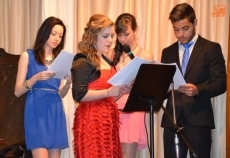 A continuación, fue turno para el discurso de los alumnos, hecho a 4 voces, en el cual se habló de cómo ha sido el último año en el centro (aplazando poco a poco el momento de ponerse a estudiar), y cómo ha sido la convivencia con cada uno de los profesores que han tenido.