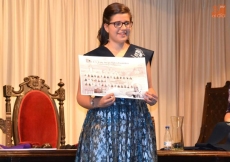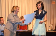 Concluida la intervención del alumnado, tuvo lugar el momento más significativo: la imposición de las bandas (que dieron bastante guerra) y la entrega de las orlas. Respecto a la orla de los alumnos de 2º de Bachillerato, incluye una imagen del recientemente desaparecido Gabriel García Márquez, y una panorámica de Ciudad Rodrigo dibujada por la profesora encargada del diseño de la orla, Concha Redondo, que al igual que los alumnos, también hace las maletas, ya que ha encontrado plaza en otro centro.