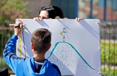 Colaboró en la realización de los textos que se fueron leyendo en las diferentes paradas Toño Villalón. Un equipo de chavales del centro y el equipo de profesores reforzaron cada actuación con los dibujos a caballete, siempre representativos y adaptados a la ocasión.