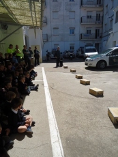 Para empezar, los alumnos tuvieron la oportunidad de ver, tocar y subirse a los vehículos del Cuerpo, haciendo sonar además las sirenas. Posteriormente, un perro especializado en la búsqueda de droga realizó una exhibición.