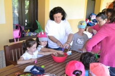 En su estancia en el recinto, los chavales (más de un centenar) fueron rotando por diversas actividades, como un taller de fabricación de pan, otro de elaboración de colgantes de arcilla, o varios juegos, incluidos algunos tradicionales como el juego de la rana, desconocido para unos cuantos chavales (aunque algún otro explicaba que ya había jugado en su barrio).