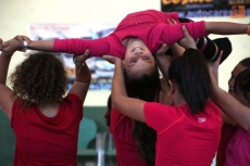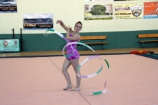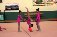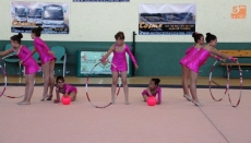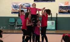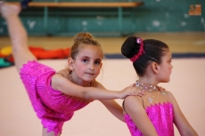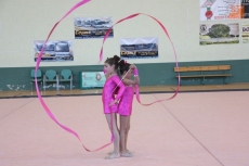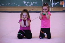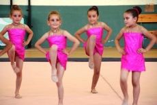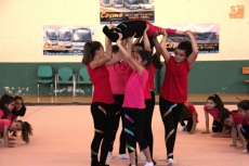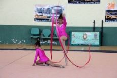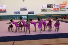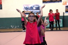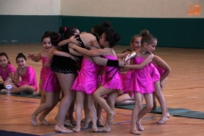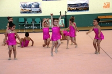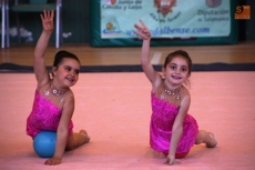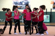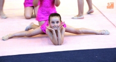 Las pequeñas gimnastas se atrevieron con todo, solamente los nervios del momento borraron ocasionalmente la sonrisa en sus caras. El pabellón lleno y cincuenta alumnos dando lo mejor de sí mismos bajo la atenta mirada de su entrenadora Silvia Pérez y la monitora Paula Arroyo. A la gimnasia ritmica le siguió el baile moderno, donde los más pequeño mostraron sus dotes en la coreografía de canciones conocidas internacionalmente.