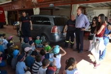 En primer lugar, los pequeños recibieron una charla sobre las funciones que realizan los Bomberos y los vehículos de los que dispone el Parque. A continuación, los chavales salieron al patio exterior del Parque para 'ejercer como Bomberos' por unos segundos, cogiendo la manguera y lanzando agua. Y por último, tuvieron la oportunidad de subirse a los vehículos y hacer sonar las sirenas.