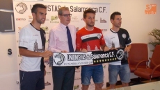 En la mañana de este viernes han sido presentados Antonio Paz, Jaime García y Adrián Sánchez como nuevos jugadores de Unionistas de Salamanca CF. Junto a ellos estuvieron Alejandro Becerro y Jorge González Astu, los dos máximos responsables deportivos. A la cita faltó Rubén Mateos, que no pudo acudir por motivos laborales aparecerá en futuras comparecencias.