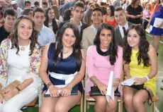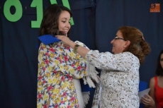 La larga ceremonia continuó con la entrega de unos pines a las alumnas de 2º de Bachillerato que han obtenido Matrícula de Honor: Andrea Flores Ceballos, Iris Ramos Hernández y Andrea Ramos Verde. A continuación, fueron subiendo al escenario todos los graduados, para recibir las bandas y las orlas.