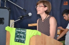 Arantxa Oria hizo mención a la marcha, junto a los alumnos graduados, de 6 profesores que han encontrado un nuevo destino profesional: Miguel Ángel, Teresa, Elisa, María José, Cristina y Elvira. Los dos primeros cierran una larguísima etapa profesional en el IES Tierra, y con este motivo, ofrecieron un discurso durante la ceremonia.