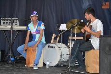 Tras estos discursos, llegó el turno de la primera actuación de la ceremonia, a cargo de Sergio Montero y Adán, que ofrecieron un popurri de rumbas y un fandango. A continuación, los alumnos de 2º Bachillerato proyectaron un vídeo con imágenes recopilatorias de sus 6 años en el centro, mientras sonaban canciones nostálgicas como el Cuando me vaya de Melocos & Natalia (de La 5ª Estación).