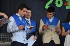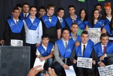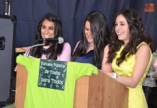 Concluido el vídeo, fue turno para los discursos de los alumnos. Por parte de 2º de Bachillerato A (Ciencias) dieron el discurso Gemma Rodríguez y Paula Lerma; mientras que por parte de 2º de Bachillerato B (Letras) lo hicieron Judith Gonzalo, María José Enríquez y Alba Gaspar. En ambos casos los discursos estuvieron centrados en hablar de los profesores que han tenido este curso.