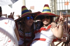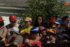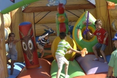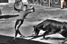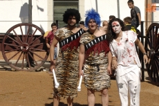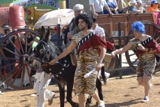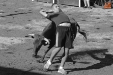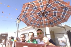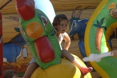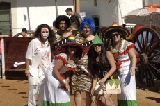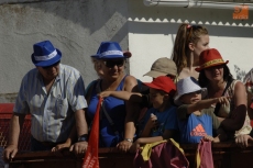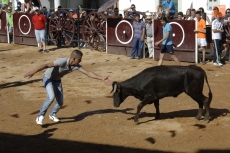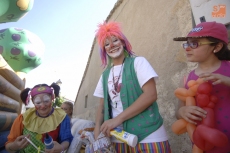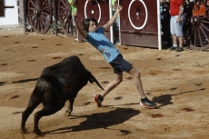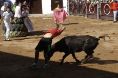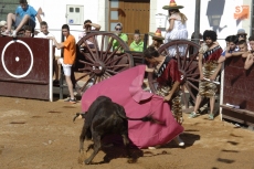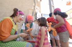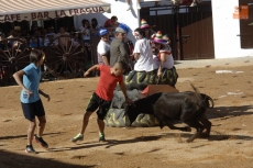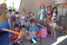Por la tarde se repitió el esquema: los niños tuvieron como entretenimiento un espectáculo de globoflexia a cargo de los payasos Bobolino y Piruleta, y hubo otro espectáculo taurino, en este caso una capea en la plaza delimitada por ruedas y barreras. El buen ambiente y las risas fueron la tónica general, en la que unos cuantos jóvenes ?y algunos mayores- participaron en las actividades disfrazados, para darle aún más color a la calurosa tarde.