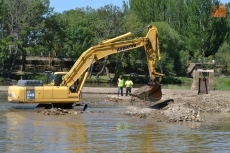 CIUDAD RODRIGO | La excavadora llegaba a última hora de la mañana del martes a la altura de la compuerta