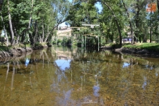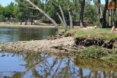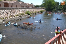 En esa zona había en la mañana del martes un grupo de jóvenes piragüistas, que tuvieron que esquivar unas cuantas ramas que habían quedado visibles por la bajada del caudal.