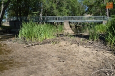 Durante las últimas horas, el agua de la presa ha continuado descendiendo (la compuerta permanece abierta en todo momento), notándose de forma notable la bajada del agua en el tramo que va desde el puente de acceso a la isla de El Picón hasta la antigua fábrica de harinas de La Concha.