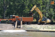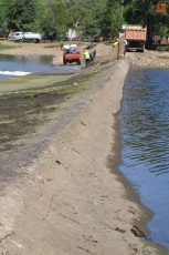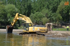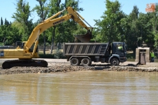 Según va sacando restos, la excavadora los va depositando en camiones (al menos hay 3 participando en la operación), que acceden hasta la zona por un camino que se ha construido en paralelo a la presa.