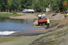 Como se puede ver en las imágenes (tomadas en el último tramo de la mañana del martes), la máquina excavadora encargada de 'vaciar' el fondo de la presa estaba a la altura de la compuerta.
