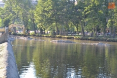 Aunque inicialmente estaba previsto bajar la compuerta de la presa al concluir los trabajos del día de hoy (que finalizaron sobre las 22.00 horas), para que no hubiera problemas con el abastecimiento de agua, finalmente se está bombeando el agua del río sin problema en la toma de abastecimiento de la ciudad, con lo cual no ha sido preciso bajar la compuerta, y se continuará evacuando agua durante toda la madrugada.