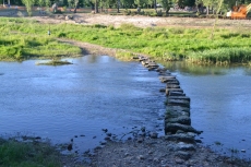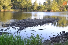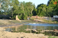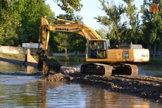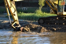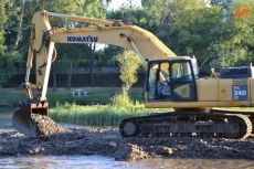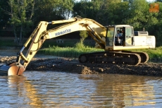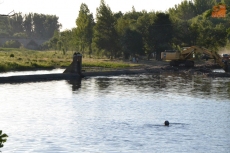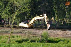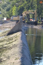Los que bajaron a la zona desde el último tramo de la mañana en adelante pudieron ver una excavadora encargándose de ir 'construyendo' (con restos sacados del propio fondo de La Pesquera) un camino paralelo a la propia presa. Este camino será usado por los camiones que se encargarán de ir retirando restos acumulados en el fondo del río.