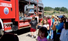 LUMBRALES | Los escolares tuvieron la oportunidad de enfundarse los trajes de los bomberos y observar el funcionamiento de algunas de las herramientas que utilizan en sus intervenciones