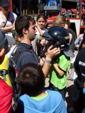 De este modo, los niños comprobaron cómo funcionan algunas herramientas y pudieron ponerse los distintos trajes que utilizan para cada una de las misiones, así como las mascarillas. También manejaron las mangueras de agua y de espuma, con algún que otro chapuzón, y pudieron subir a los camiones con la sirena sonando en lo alto como si de una llamada de emergencia real se tratara.