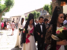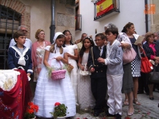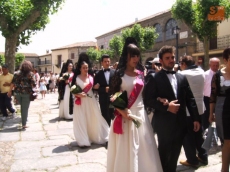 Olor a tomillo, incienso y pétalos de rosa. Acompañados por el sonido de los tamboriles se iniciaba la procesión del Corpus, tras la celebración de la Eucaristía en la iglesia de Santa María La Mayor, en unos de los días grandes de Ledesma. Las puertas del templo se abrieron para dar paso a los estándartes y la cruz alzada, seguidos de la corte de honor de las fiestas -reina, damas (ataviadas con mantillas blanca y negra) y acompañantes-, de los niños y niñas que recibirán este año la Primera Comunión y del trono con el Santísimo Cristo.