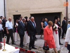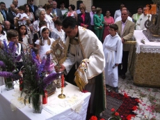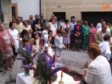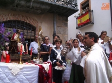 Miembros de la Corporación Municipal, vecinos y amigos de la villa se han sumado a la procesión que, desde la Plaza Mayor, ha recorrido en esta soleada, y festiva, jornada gran parte de la zona antigua de Ledesma para regresar al punto de partida. A lo largo del recorrido, los altares para ser bendecidos, decorados con sencillez, devoción y sobre una alfombra de tomillo y pétalos de flores. No han faltado tampoco los adornos en los balcones.