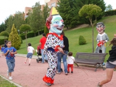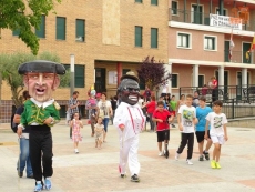 La jornada festiva continuó en el Prado de la Vega, donde tuvo lugar el estreno de los cabezudos, que por primera vez se veían en Carbajosa, gracias al Centro Joven.