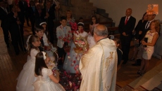 La imagen del Corpus Christi volvió a recorrer las calles de Linares de Riofrío en un ambiente festivo. Una ocasión que coincide en este municipio con la celebración de las Primeras Comuniones. A las 13 horas comenzó la ceremonia en la iglesia parroquial de Nuestra Señora de la Asunción. Este año, 12 niños y niñas tomaron su Primera Comunión rodeados de sus padres, demás familiares y amigos.