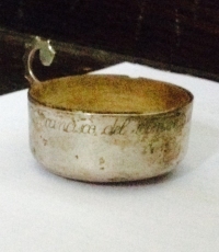 -Cáliz: plata dorada torneada, cincelada, repujada, esgrafiada fundida; patena: 15,5 cm de: Cáliz: "PHILIPVS HISPANIE PEX (sic) ME DONAT ANNO 1567". Patena: "NVESTRA SENORA DE PORTA CELI (sic)" y "S. I. EVANGELISTA".