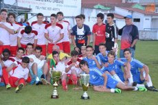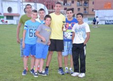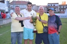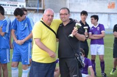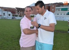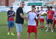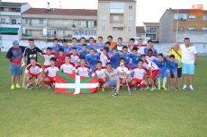 Los técnicos de los Combinados de Vizcaya, Kepa Arizmendi (Cadete) y Aris Marcos (Juvenil) agradecen a Mikel Expósito, presidente del Romo C.F., la cesión de los uniformes con los que han disputado el Torneo.
