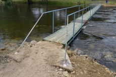 Como se puede ver en las imágenes -tomadas en la mañana del lunes- se han colocado unas piedras en el suelo de cada uno de los extremos de la pasarela para facilitar el acceso a la misma. Además, las barras laterales tienen su punto de inicio y final en estas piedras.