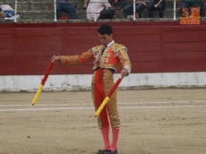El venezolano Manolo Vanegas completaba el cartel, encargado de abrir la plaza, ovacionado en ambas faenas. Fue un toreo sincero y voluntarioso en todo momento pero pecó en él la falta de oficio ante 'Trianero', su primero, premiado con una fuerte ovación en el arrastre. Su segundo hizo que se complicaran aún más las cosas. Fue otro de los novillos más complicados de la tarde junto con el último, poca clase y justito de raza este de Palla.