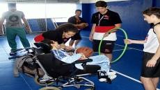 Una mañana muy especial de convivencia entre los niños con parálisis cerebral de Aspace en el pabellón municipal 'Dori Ruano' de Villamayor