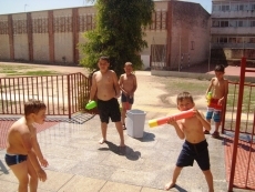 Debido a este motivo, los chavales acudieron en la mañana del viernes al lugar donde se imparte el programa, el Colegio San Francisco, en bañador. A media mañana, salieron al patio del Colegio, para refrescarse con el agua procedente de una manguera. Asimismo, también pudieron tomar el sol.